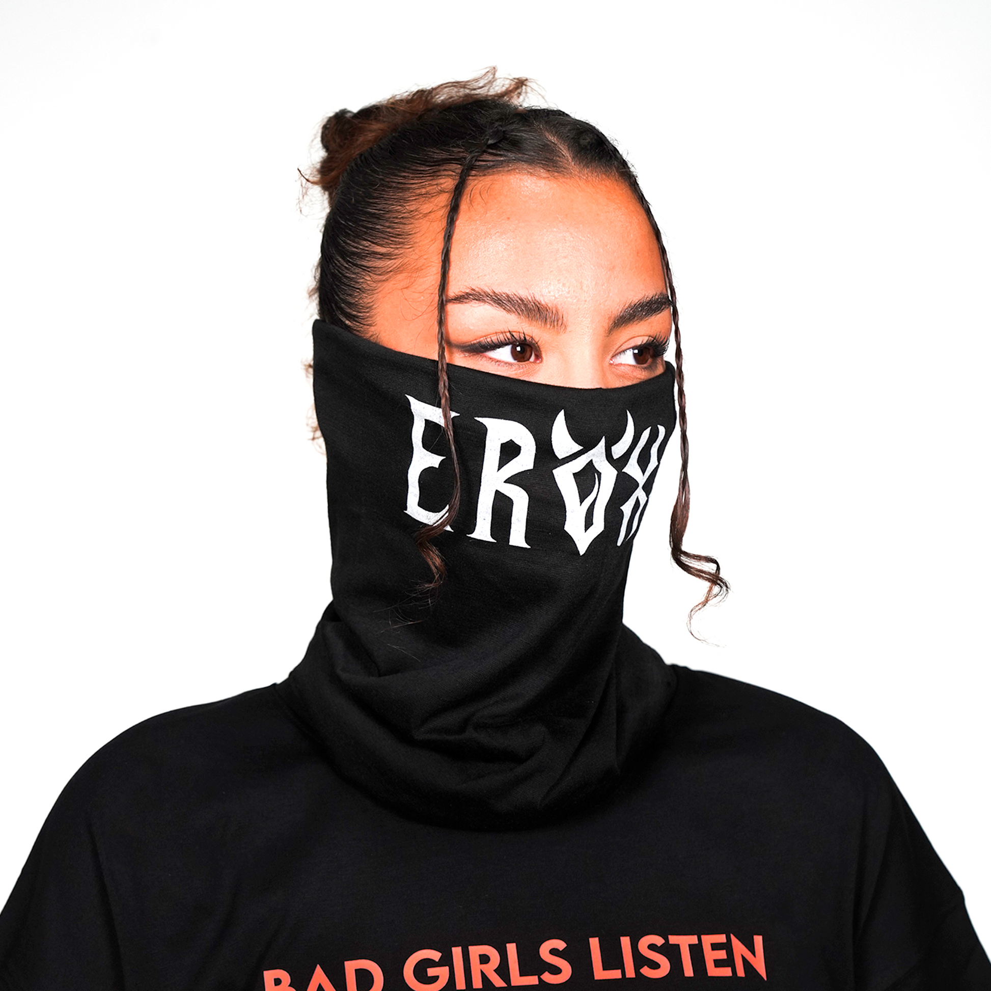 BUFF de cuello con estampado de logo ERØXX. Accesorio multiusos para ravers. Ideal para taparte del viento y polvo en el festival o ocultar tu rostro en el after. 100% actitud ERØXX.